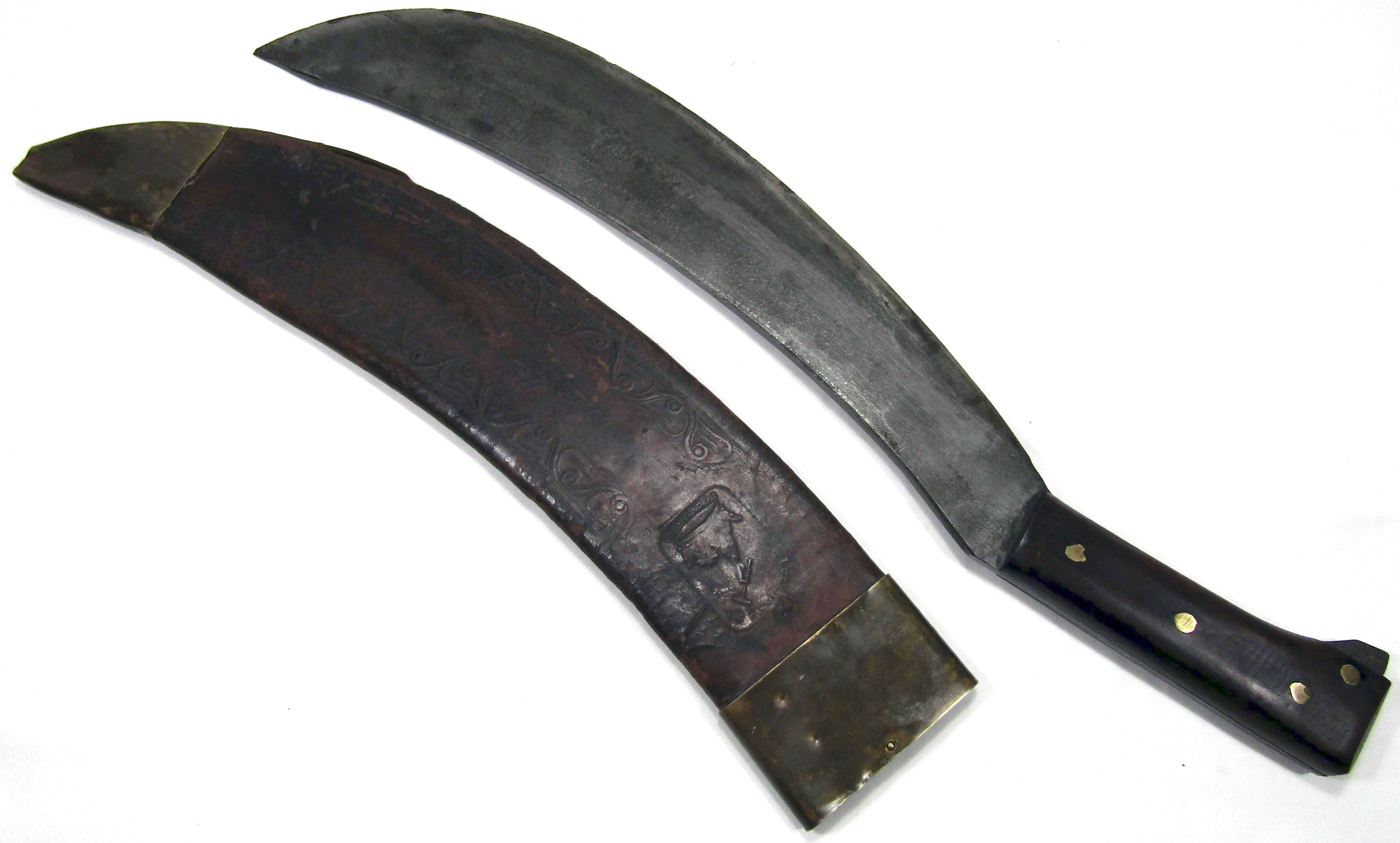 WWI US Collins Machete No 1005 Engineer Legitimus Emboss Leather Scabbard 51.4cm