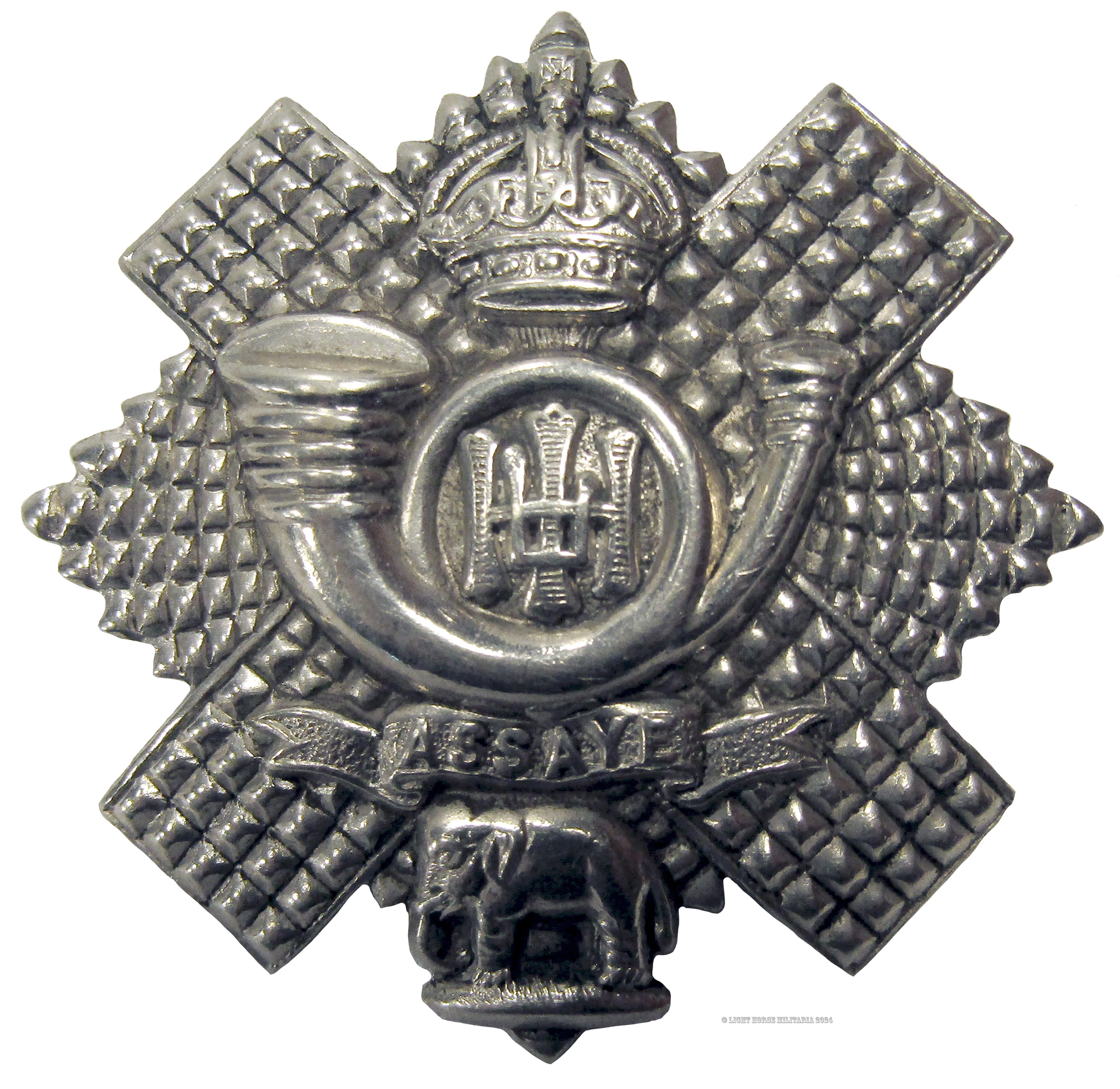British Highland BRASS Light Infantry ASSAYE Military Cap Badge
