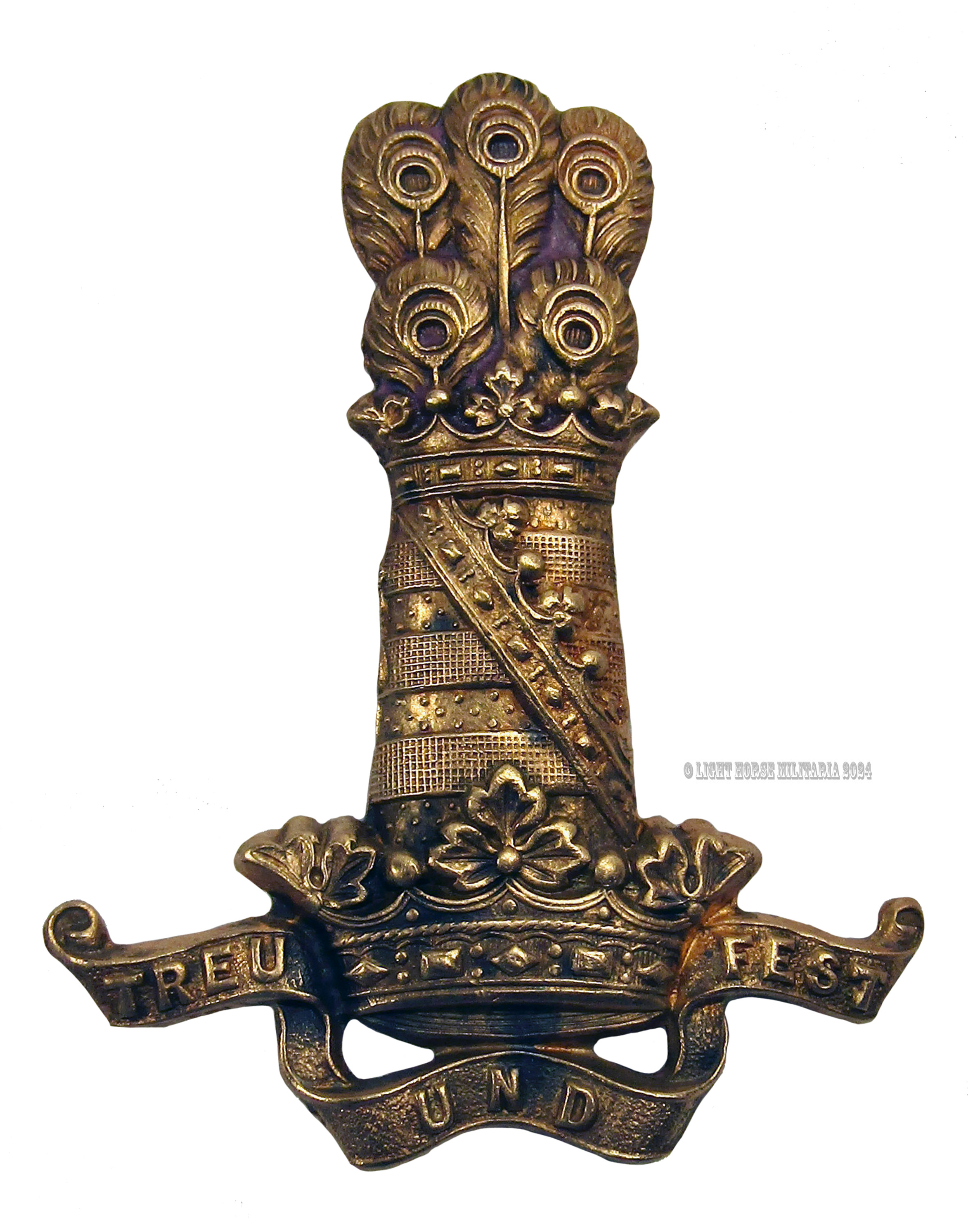 British 11th Hussars Prince Alberts Treu Und Fest Military Cap Badge