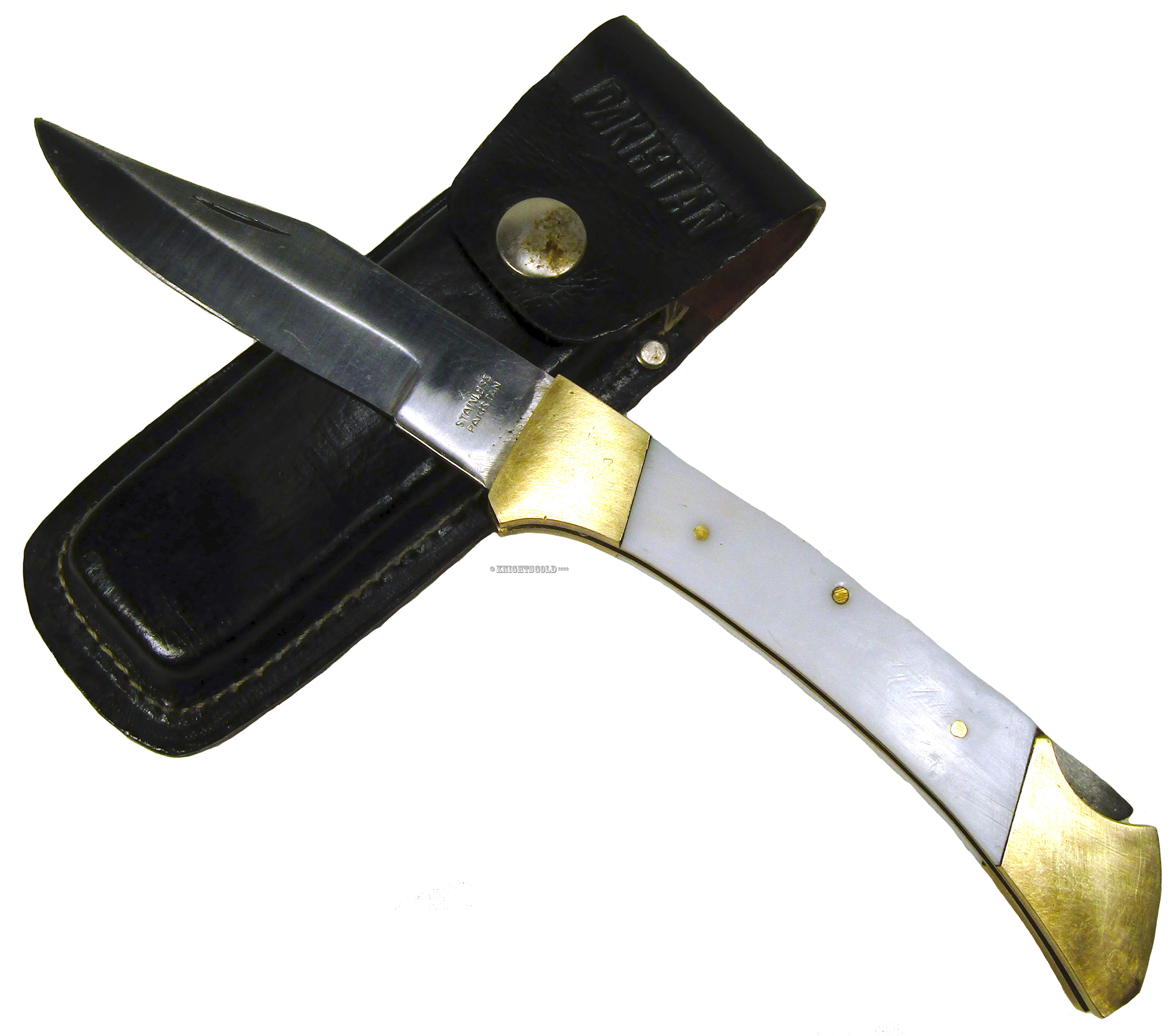 Pakistan Stainless Steel Brass Folding Pocket Knife Leather Sheath