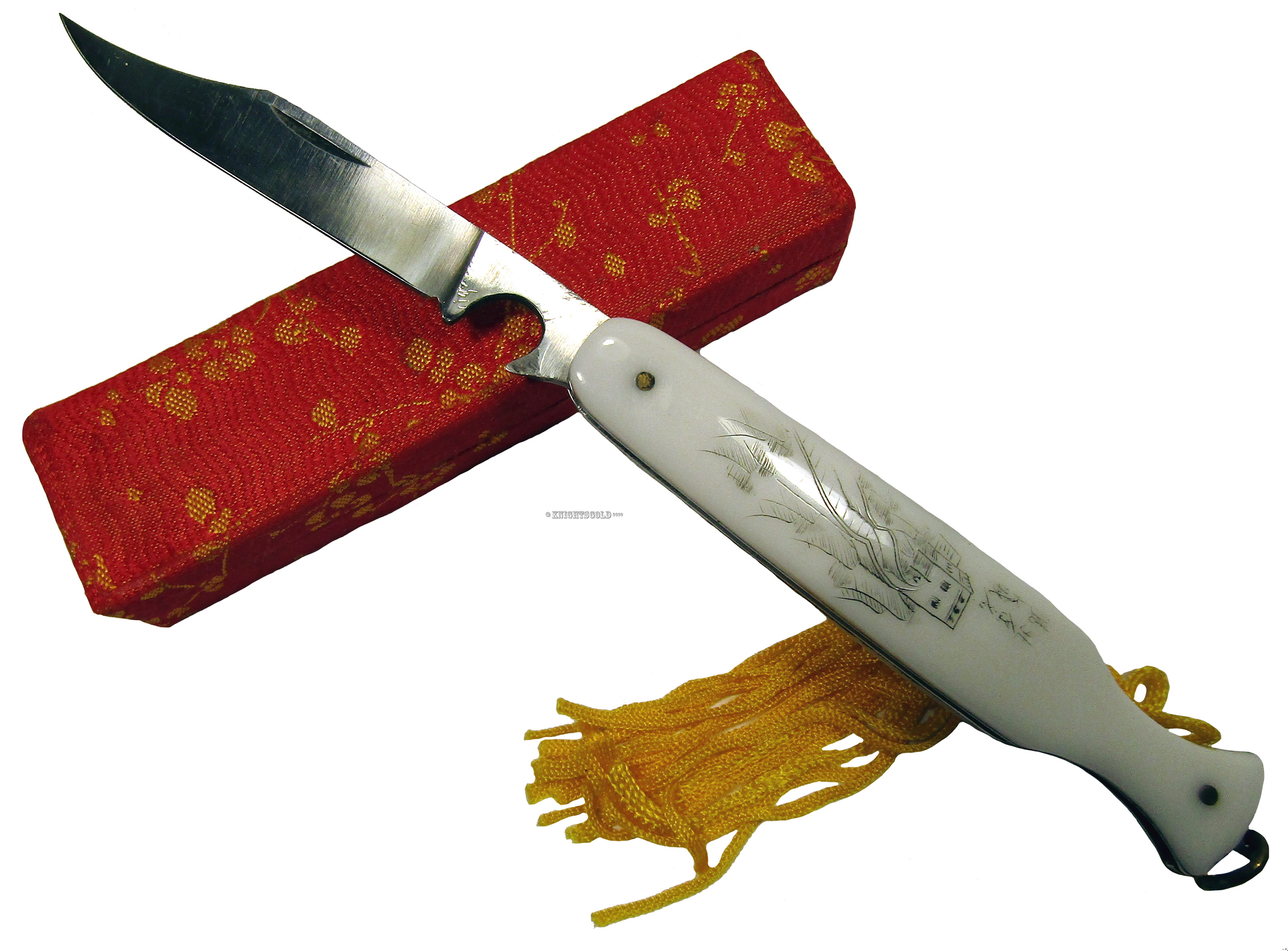 Oriental Folding Pocket Knife Bottle Open Red Silk Box 16 cm