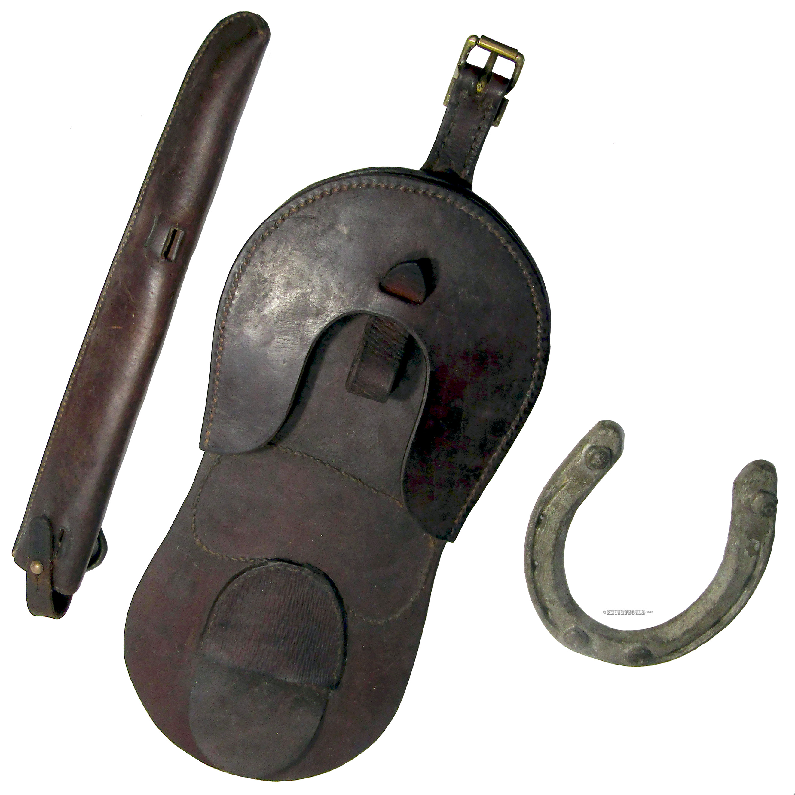 WW2 Leather Spare Horse Shoe Carrier & Picket Pin Sheath Bradbury Estate