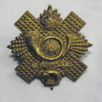 This badge is a pressed brass metal headdress featuring a diamond-cut "Star of the Order of the Thistle", it features an Imperial (King's) crown superimposed on the top of the upper point and has at its centre a French bugle horn, the twist of which encloses the monogram 'HLI'. Below the horn is a small scroll marked 'ASSAYE' and below that again, and over the lower point of the star, is an elephant standing on the ground. It has a pair of lugs on the reverse. Assaye is a small village in the Jalna district of the state of Maharashtra in western India. The village was the location of the Battle of Assaye in 1803, fought between the Maratha Empire and the British East India Company. It became the first real victory for the young general Arthur Wellesley #This Badge pattern was worn from 1881 to 1959 featuring different crowns. During the Cardwell/Childers reforms of 1881 the 71st (Highland Light Infantry) and the 74th (Highlanders) Regiments of Foot were amalgamated to form the Highland Light Infantry. The headdress badge adopted was based on the Star of the Order of the Thistle with the Light Infantry bugle horn in the centre, and the monogram "HLI" in the centre twist. An imperial crown was superimposed over the upper point of the Star and at the lower point a scroll carrying ASSAYE above an Elephant on the ground. The Thistle Star and the bugle horn both derived from the 71st and the Elephant with scroll is derived from the battle honour awarded to the 74th for their fine showing at that battle in September 1803. In 1923 the Regiment was re-designated the Highland Light Infantry (City of Glasgow Regiment), with no change to the badge. In January 1959 the Regiment reluctantly amalgamated with the Royal Scots Fusiliers to become the Royal Highland Fusiliers, somewhat oddly becoming part of the Lowland Brigade. They wore the Brigade's badge.