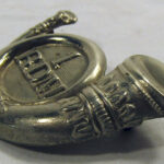 For your consideration, you are viewing a piece of military history. This badge is a British 1st Georgetown Battalion Royal Demerara Shako Badge. Badge of a regiment is its most basic identifying emblem and much emotion is vested in such badges by members of regiments. This presents as a white metal badge in the form of a bugle horn with the unit numeral and initials, '1 RDM', on a hatched ground. With two copper loop fittings horizontally placed on the reverse.