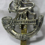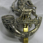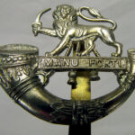 The cap badge of a regiment is its most basic identifying emblem and much emotion is vested in such badges by members of regiments. The badge is taken from the crest of the coat-of-arms of the City of Hereford which features a Lion passant guardant, holding in the dexter paw a sword standing over the motto ‘MANU FORTI’ means ‘with a strong hand’ The addition of the Light Infantry bugle-horn originally came from the Prussian Field Jaeger Corps who acted as fast-moving light infantry advance scouts who used a bugle to pass orders.
