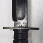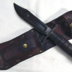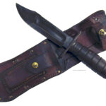 For your consideration, you are viewing a fixed-blade Knife, this is a Camillus Fixed Blade Pilots Survival Knife (aka BOLT knife), the second version of the Jet Pilot Knife (JPK) aka Pilots Survival Knife in its final, 5-inch size (from 1961.) This comes with its original brown-coloured leather sheath with a belt loop, a snap closure strap and a pocket to hold the sharpening stone. These were popular during the Vietnam War. The Pilots knife was favoured and commonly purchased by military personnel for use by soldiers stationed in Vietnam, who did not have easy access to government-issued JPK’s and were widely used in the 60s and 70s by a lot of our servicemen. Each knife is manufactured per US Government specifications and features a 5" 1095 carbon steel clip-point sawback blade with a swedge, false top edge and fullers. The handle is made from stacked natural leather washers with a steel Hex butt cap. The JET PILOT KNIFE (JPK): Also known as the “Air Force Survival Knife” and the later models were “Ontario 499” This knife is one of the most famous fixed blades ever sanctioned by the U.S. Military. Military Fighter jet aircraft didn't take to the skies until the later days of WWII, and it wasn’t until the 1950s that the U.S.A.F. pursued a jet-powered fleet. After seeing that Pilots could be shot down behind enemy lines, the U.S. Department of Defence issued the “Military Specification Document MIL-K-8662" issued in October 1953. Inside this document, were the specifications to develop an Air Force Survival Knife: A tool that would help pilots escape downed aircraft and also be used as a sheathed hunting knife to help a pilot’s chances of survival. The Department of Defense specifically demanded the Air Force Knife be capable of stabbing and chopping through an aluminium hull. That’s why this blade is serrated and ground with a broad clip point and wide bevel and this design was also designed to fit into a tiny paddle and tiny raft, just in case one was ejected over water. The hex pommel acts as a hammer and is used to smash out the windows of downed aircraft. Camillus produced the USAF Pilots' knives, including the 1st version which had a 6″ blade (from 1959 to 1961) which was before the Military specs were updated, requiring a 5″ blade.CONDITION